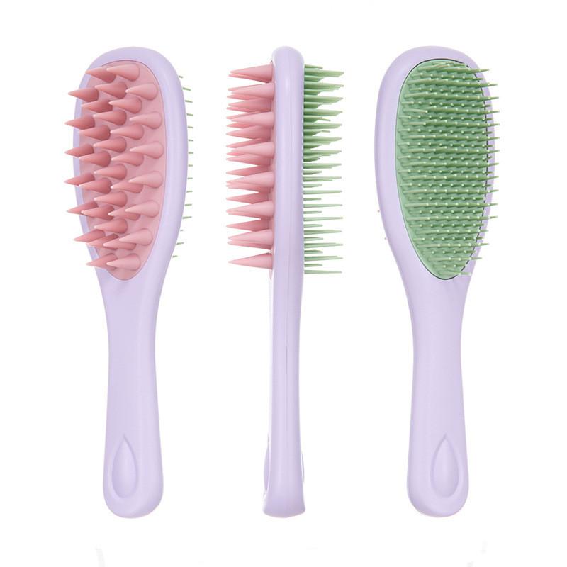 Двохстороння щітка-гребінець для мокрого волосся. фіолетовий з салатовим