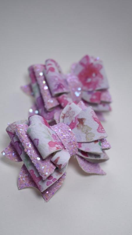 Бантики из эко-кожи и глиттера, полностью-учная работа, основа - резинка
