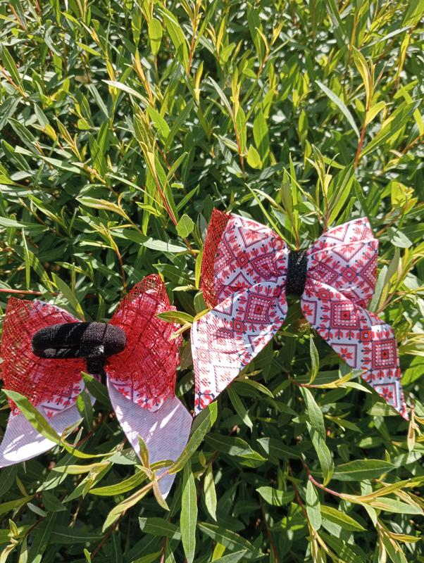 яскраві бантики на резиночках,можливі варіанти на заколці чи пишний бантик на обручі.