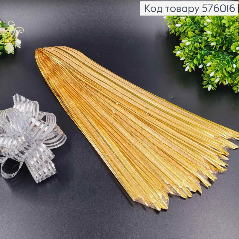 Бант-затяжка для подарунків(10шт), золотого кольору, смугастий, шир. 5см, у складеному виг...