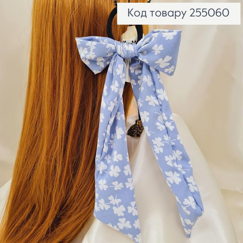 Резинка 5см твіллі бант сіро-синій, листочки довгий жіноча на голову