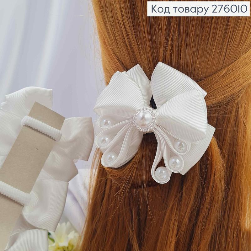 Резинка, бант репсовий, білого кольору з перлинками, 10*8см, ручна робота