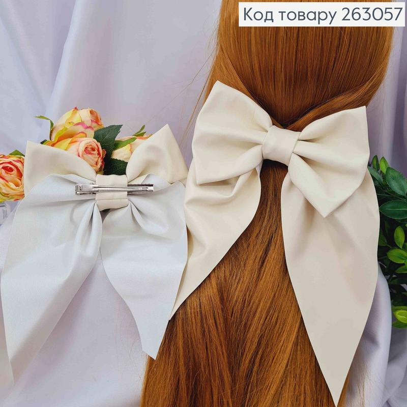 Бант з еко-шкіри айворі, на заколці стріла, розмір 14*21см, україна, прикраса для волосся