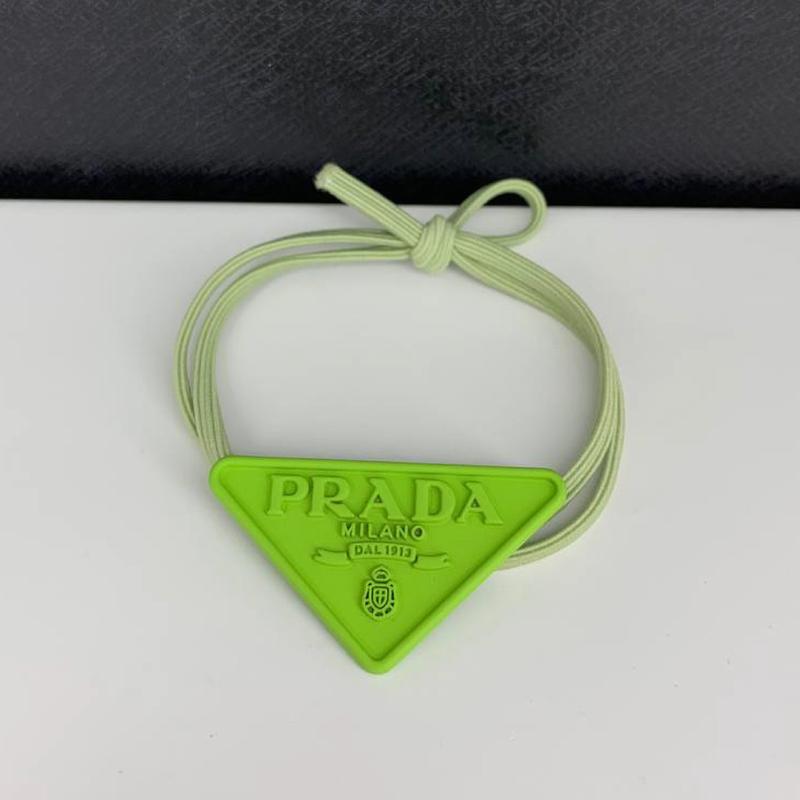 Брендова гумка для волосся прада prada салатова з трикутником логотипом