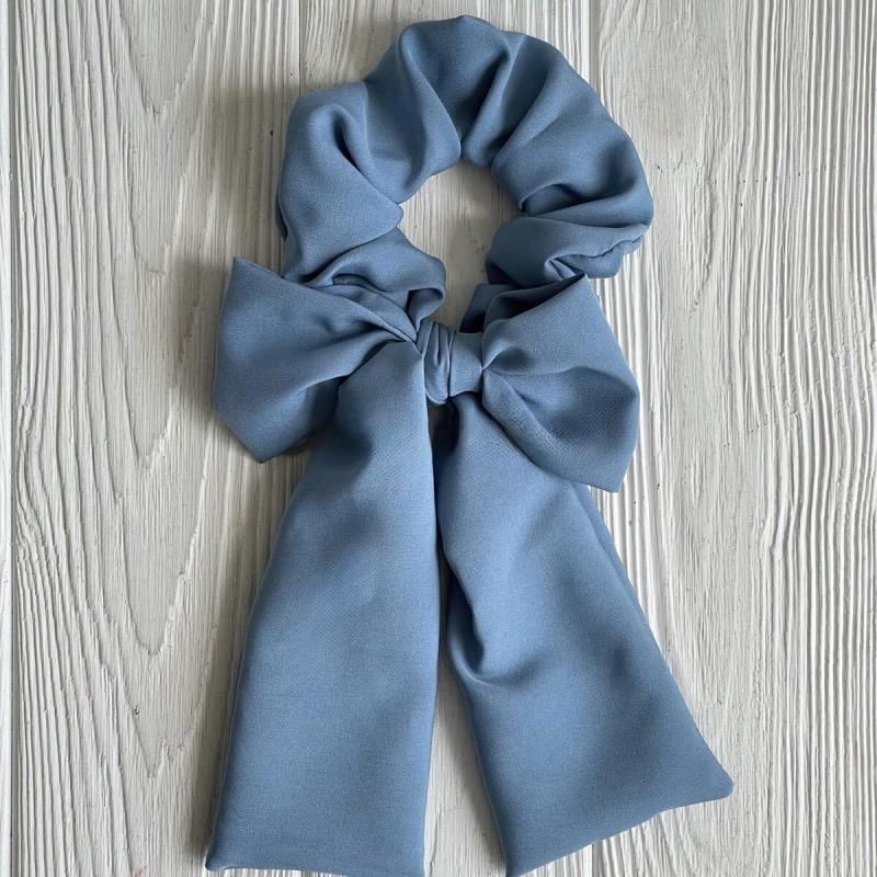 Резинка твіллі з бантом 27 см скранч світло-синій