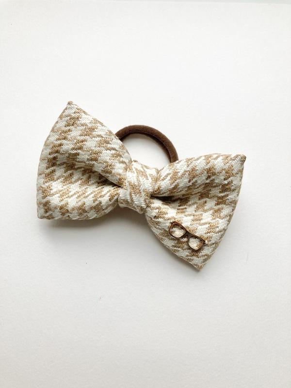 Гумка з бантом у бежевому візерунку "гусяча лапка"