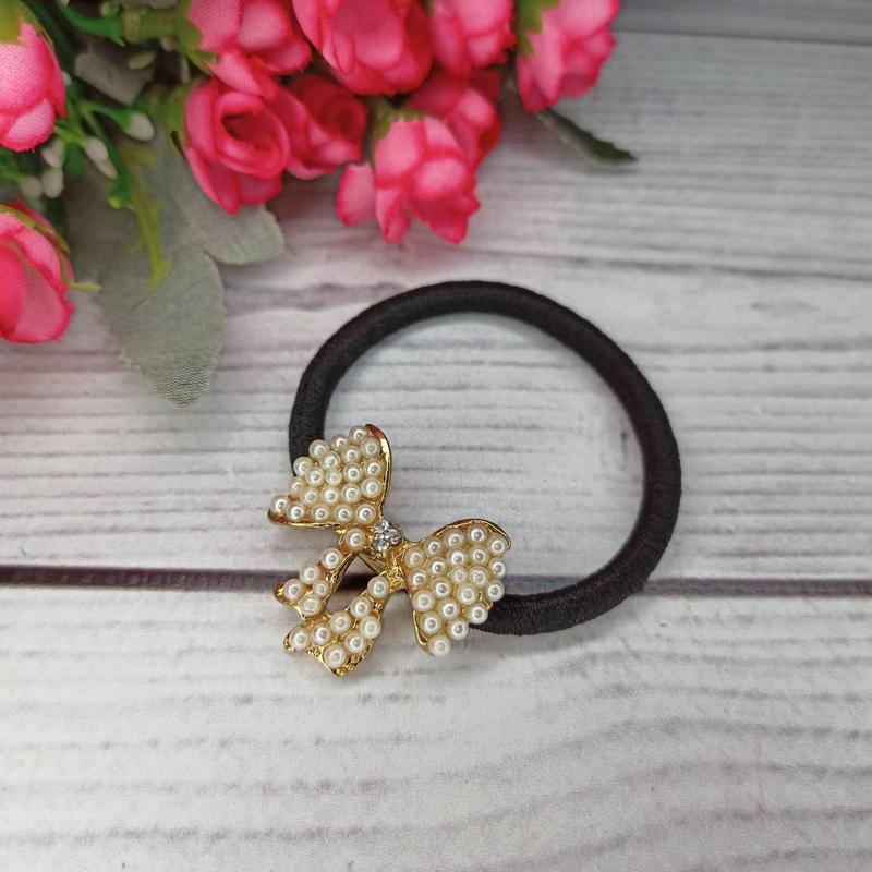 Гарна гумка для волосся інкрустована штучними перлами. Милий, зручний і універсальний аксесуар для волосся