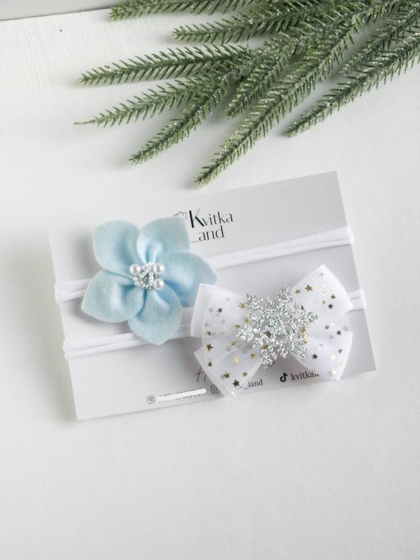 Набор новогодних повязок для девочки ручной работы бантики снежинка для новорожденного