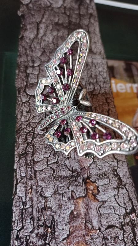красива заколка для волосся у вигляді метелика. якісно виготовлена з металу, прикрашена стразами. розмір 5х4.5 см