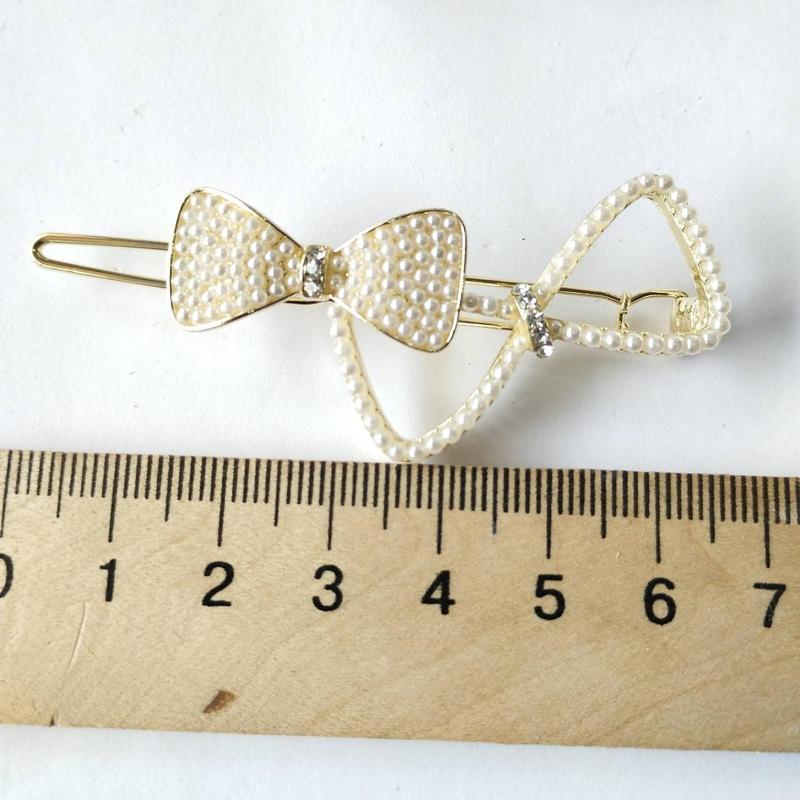 Заколка зажим металева для волосся з перлами . довжина 7 см.