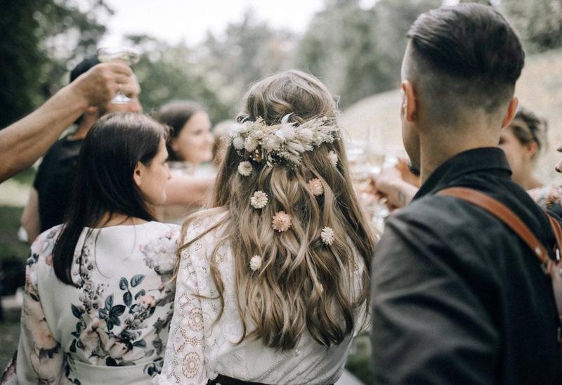 Заколка на голову з сухоцвітів у ніжних, молочних та рожевих відтінках