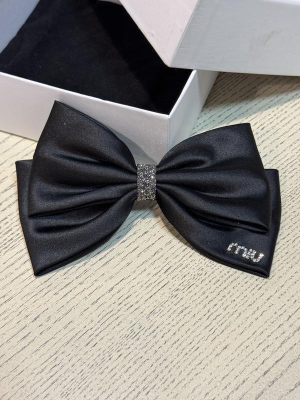 Шпилька-бант miu miu в чорному кольорі з логотипом і розсипом цирконію