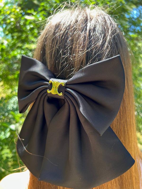 Шпилька автомат шанель — бант шовковий чорного кольору