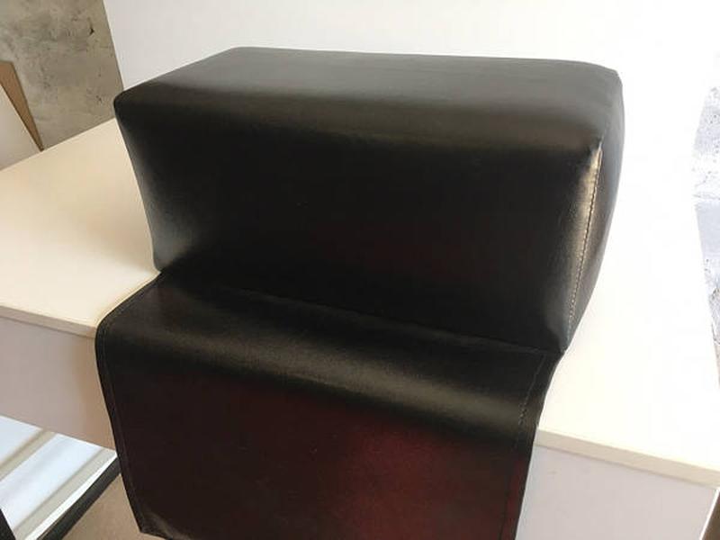 Пуфик для стрижки дітей. Невід'ємний атрибут будь-якій перукарні або салону. Зручний як для майстра,так і для малюка,він має вшитий фартух для виключення забруднення штатного крісла.Зроблений з високоякісного шкірозамінника. Кольори в асортименті Габарити: Висота 20 см Глибина 20 см Довжина 40 см