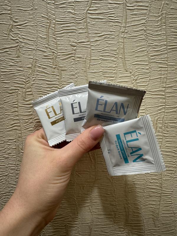 Фарба для брів ELAN Відтінки: 02 темно коричневий 03 світло коричневий 01 чорний Набір фарби та окисник - 75 грн Фарба окремо - 45 грн Окисник окремо - 45 грн Арганове масло для брів - 35 грн Ложечка для змішування фарби - 10 грн Ремувер фарби - 50 грн Відправка будь якою поштою При відправці через укр пошту (замовлення через шафу) + 4 грн за пакування