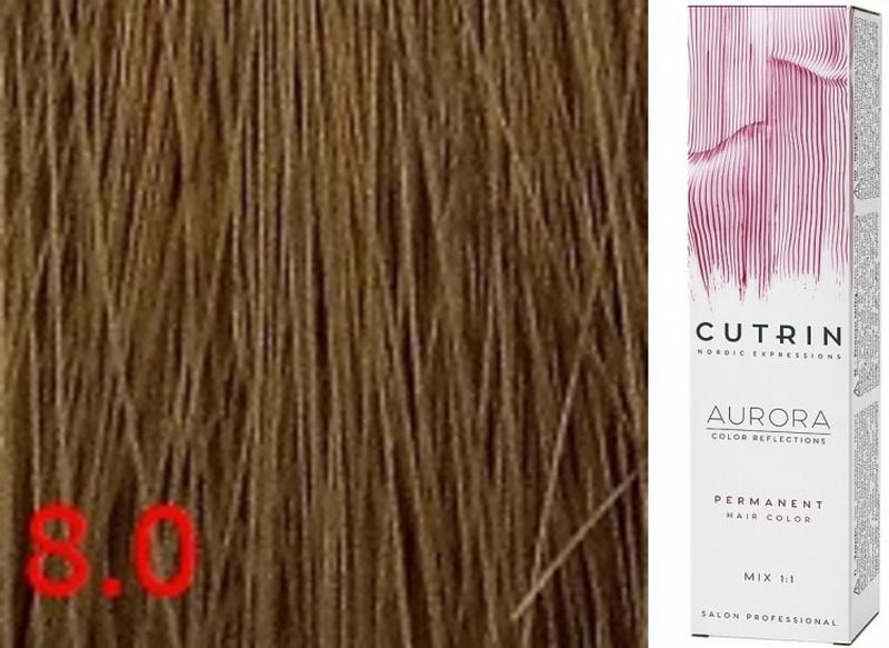 Cutrin aurora permanent color — амміачна фарба для волосся 8.0 світлий блондин, 60 мл