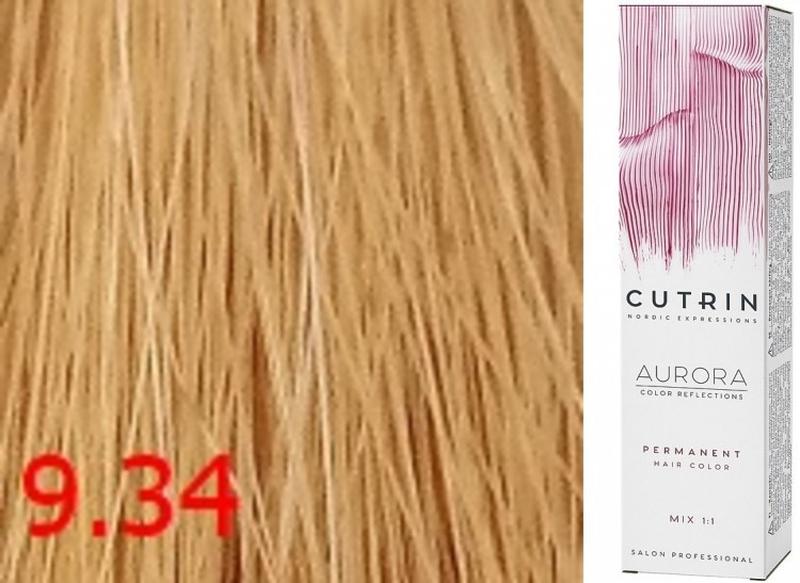Cutrin aurora permanent color - аміачна фарба для волосся 9.34 дуже світла-золота мідь, 60...