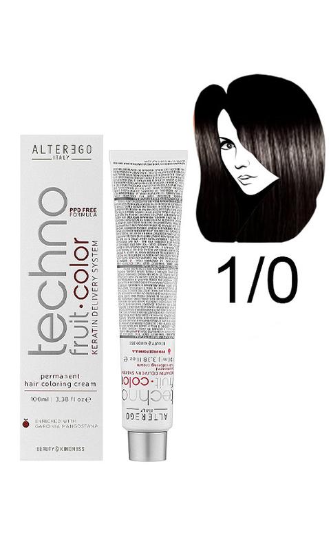 Alter ego techno fruit color permanent крем фарба технофрут колор 1/0 інтенсивно чорний