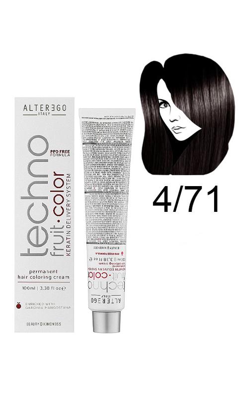 Alter ego techno fruit color permanent крем фарба технофрут колор 4/71 каштановий коричнев...