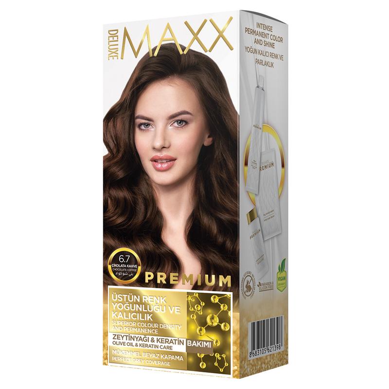 Фарба для волосся maxx deluxe 6.7 шоколадна кава, 50 мл+50 мл+10 мл