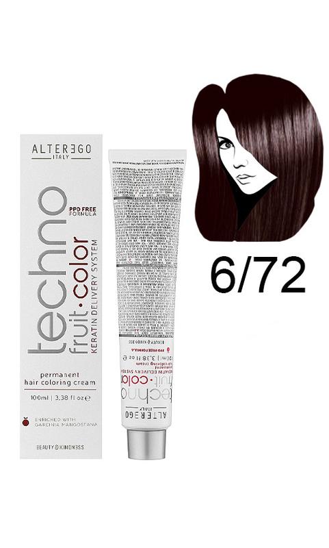 Alter ego techno fruit color permanent крем фарба технофрут колор 6/72 темно-русий коричне...