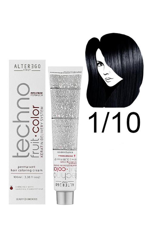 Alter ego techno fruit color permanent крем фарба технофрут колор 1/0 інтенсивно чорний 1/...