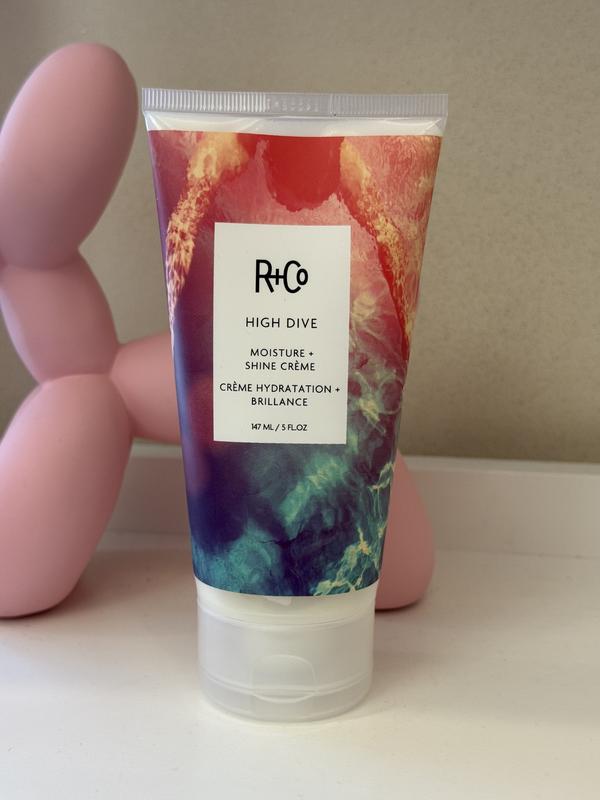 Новий Оригінал 147 мл R+Co High Dive Moisture and Shine Crème — інтенсивно зволожувальний крем для волосся, що надає локонам гладкість, сяйво та контроль над пухнастістю. Засіб розроблений для створення зачісок із пріоритетом зволоження та природної текстури без жорсткої фіксації. Крем м’яко розгладжує, ущільнює волосся по всій довжині та захищає його від негативних факторів довкілля. Формула збагачена Sodium PCA, який поглинає вологу з повітря та забезпечує глибоке зволоження; екстрактом насіння соняшнику з Аргентини, що кондиціонує волосся та утримує вологу всередині; вітаміном Е, який працює як антиоксидант і захищає від пошкоджень; а також провітаміном B5, що додає сяйва та м’якості. Завдяки цьому волосся стає більш еластичним, гладким і доглянутим.