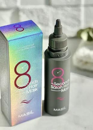 Маска для волосся Салонний ефект за 8 секунд Masil 8 Seconds Salon Hair Mask, 100 мл Концентрована салонна маска для волосся Masil 8 seconds salon hair mask всього за кілька секунд перетворить розпатлані косми в елегантні доглянуті локони. Вони стануть блискучими, шовковистими, здоровими після першої процедури. Якщо волосяний покрив дуже пошкоджений, час сеансу слід збільшити. WOW-ефект досягається за рахунок високої концентрації кератину, керамідів, ботанічних екстрактів, колагену. Застосування Розведи маску з теплою водою в пропорції 1:1 (наприклад, 10 мл води на 10 мл маски). Перемішай і нанеси на довжину волосся. Для видимого ефекту достатньо тримати масу 8 секунд, але можна залишити засіб на волоссі до 5 хвилин. Потім добре промийте волосся і використовуй бальзам, кондиціонер. Наноси маску регулярно один раз на тиждень або частіше