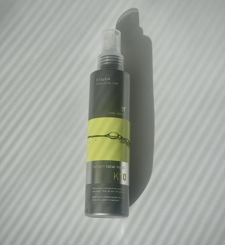Ця маска від іспанського виробника Erayba не потребує змивання та ідеально підходить для сухого та пошкодженого волосся. Маска дуже зручна у використанні та забезпечує відразу 10 корисних ефектів. Завдяки цьому засобові ваше волосся стане гладеньким, здоровим і слухняним. Нанесіть маску на волосся, не змиваючи, і ви відразу відчуєте її корисну дію. Засіб випрямляє неслухняні локони, усуває небажану кучерівість і значно полегшує розчісування й укладання. Також маска дарує волоссю об'єм і наповнює пасма чудовим природним блиском. За умови регулярного використання засіб відновлює пошкоджене волосся, а також усуває сухість і ламкість. Маска ефективно захищає локони від термовпливу на згубної дії ультрафіолетових променів.
