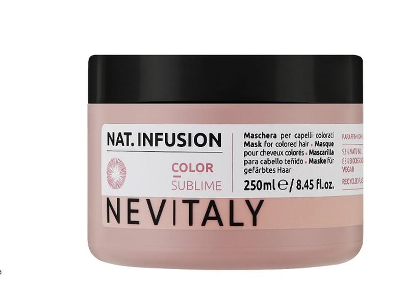 Щоб надовго зберегти глибину і насиченість відтінку фарбованого волосся, використовуйте маску бренду Nevitaly. Завдяки цінним оліям та екстрактам вона забезпечує живлення структури локонів і надає їм гарного вигляду. Засіб запобігає вимиванню кольору, а також захищає його від деструктивного впливу ультрафіолету. Особливості Nevitaly Color Sublime Mask: - інтенсивно зволожує волосся, запобігаючи його сухості і ламкості; - наповнює корисними мікроелементами; - захищає локони від механічного пошкодження; - сприяє процесам регенерації; - наповнює биском і сяйвом; - дарує гладкість та шовковистість; - спрощує процедуру розчісування й укладання; - не обтяжує волосся, зберігає його свіжість і легкість.