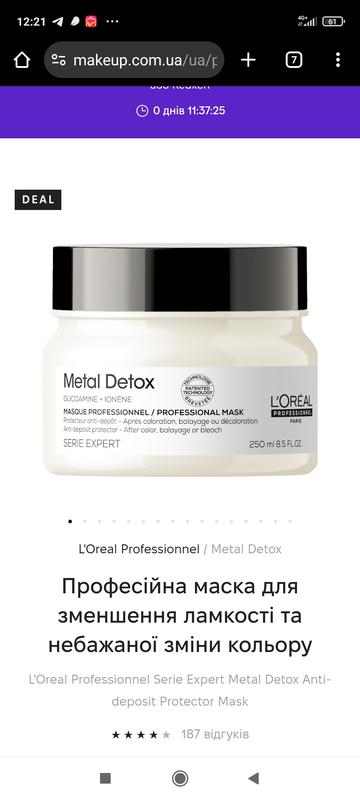 Маска для волосся від L'Oréal professional Metal Detox Об'єм 75 ml