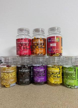 Капсули sevich 30 шт ✨ - жовтий (помʼякшують волосся, живлять, та зберігають вологу) - зелений (відновлюють сухі, посічені кінчики волосся) - оранжевий (для ламкого та пористого волосся) - золотий (до догляду за сухим, тьмяним та нормальним волоссям, допомагають його зберегти гладким та блискучим) - чорний (живить, зволожує, надає блиск, робить волосся слухняним, гладким та міцним) - фіолетовий (доглядає за фарбованим волоссям, воно стає мʼяким, легко розчісується, а колір тримається довше) - червоний (для глибокого відновлення волосся) - мікс (жовтий, фіолетовий, оранжевий, зелений, червоний, чорний, золотий)