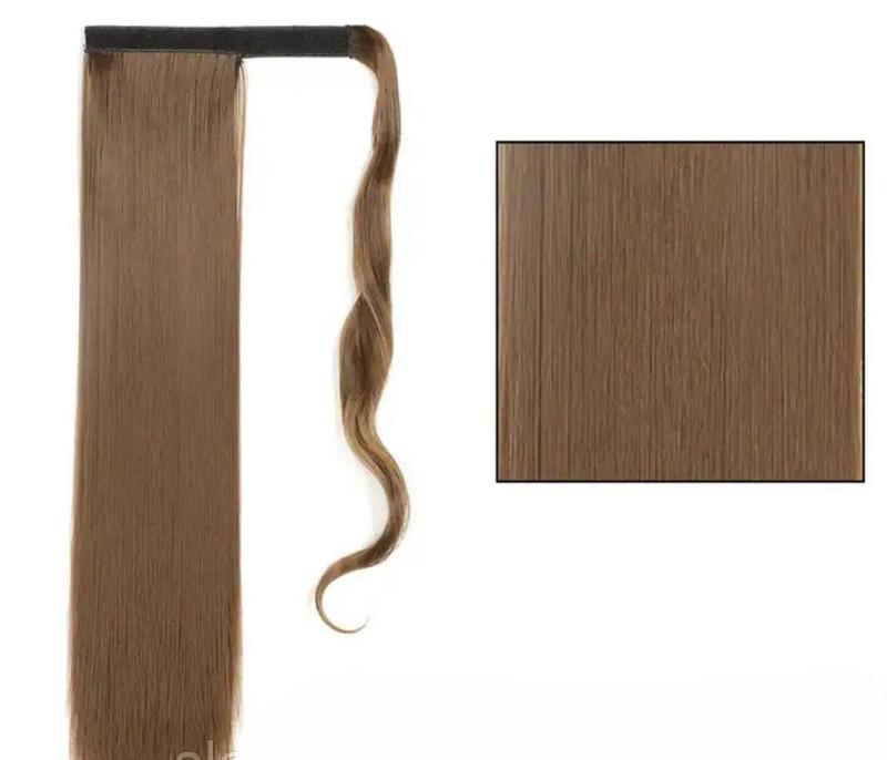 Накладний хвіст шиньйон на липучці з прядкою прямий термостійкий40 см 8# русявий