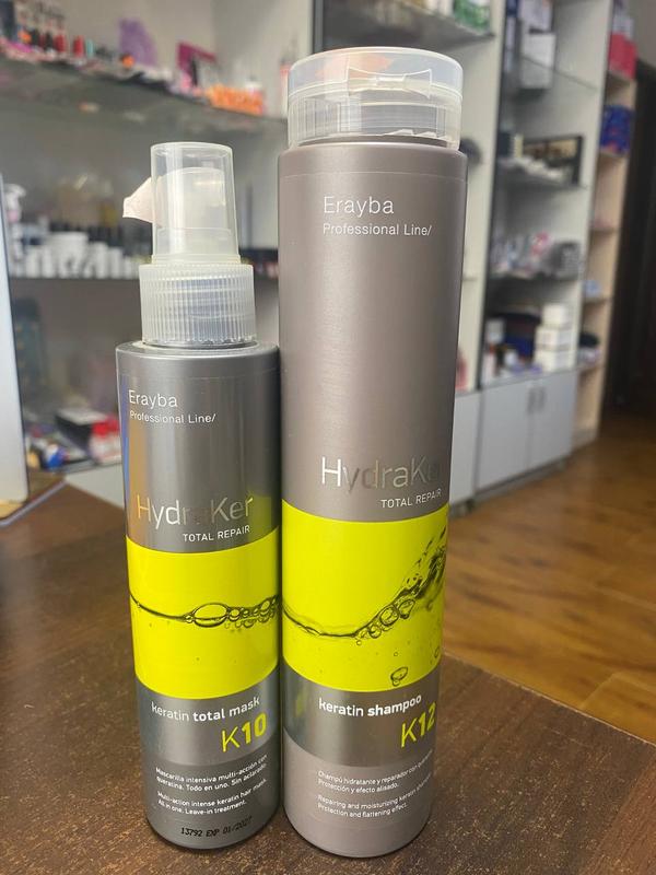 Erayba k12 keratin шампунь (250 мл) + erayba k10 hydraker маска 10в1 з кератином і арганов...