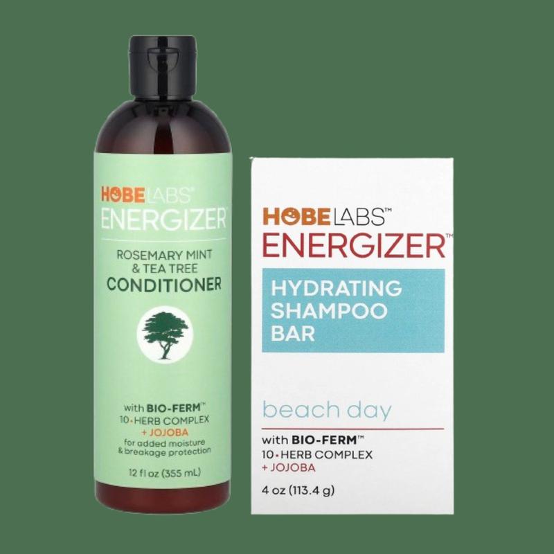 Набір засобів по догляду за волоссям Hobe Labs Energizer сухий шампунь Beach Day 113,4 г та кондиціонер розмарин м’ята й чайне дерево 355 мл Склад набору: Hobe Labs, Energizer, зволожувальний сухий шампунь, Beach Day, 113,4 г Hobe Labs, Energizer™, кондиціонер, розмарин, м’ята й чайне дерево, 355 мл Hobe Labs, Energizer, зволожувальний сухий шампунь, Beach Day, 113,4 г Опис Містить комплекс трав Bio-Ferm™ 10 і жожоба Не тестується на тваринах Хочете, щоб режим відпустки залишався назавжди? Твердий шампунь Beach Day миттєво перенесе вас на улюблений пляж без переїзду. Легка п’янка суміш бергамоту, жасмину та сандалу передає атмосферу літа. Зверніть увагу: засіб без пластикового флакону! Зволожувальний твердий шампунь Just a Hydrating із комплексом із 10 рослин Bio-Ferm™. Корінь юки, квітки арніки та ялівець заспокоюють, зволожують і зменшують подразнення, роблячи волосся шовковистим і гладким. Рекомендації із застосування Твердий шампунь. Потім нанесіть сухий шампунь на вологе волосся від шкіри голови до кінчиків. Масажними рухами спіньте та змийте водою. Інші інгредієнти Кокоїл ізетіонат натрію, стеаринова кислота, гідрогенізована соєва олія, ароматична композиція, herbi-ferm, цетримонію хлорид, вода, гуар гідроксипропілтримонію хлорид, хлорид натрію. Hobe Labs, Energizer™, кондиціонер, розмарин, м’ята й чайне дерево, 355 мл Опис З комплексом трав Bio-Ferm™ 10 і жожоба для додаткового зволоження та захисту від ламкості Не тестується на тваринах Подаруйте своєму волоссю максимальне зволоження за допомогою цього спеціально розробленого поживного кондиціонера. Містить багато інгредієнтів, які сподобаються вашому волоссю та шкірі голови, як-от заспокійливу олію жожоба, прохолодну перцеву м’яту, розмарин, на 100 % чисту ефірну олію австралійського чайного дерева та нашу унікальну суміш Bio-Ferm™ (Herbi-Ferm), яка містить 10 видів трав, а також пантенол (вітамін B-5), що робить волосся збалансованим, надзвичайно м’яким і зволоженим. Рекомендації із застосування Нанесіть на чисте вологе волосся. Ніжними масажними рухами нанесіть від шкіри голови до кінчиків волосся. Залиште на 2–3 хвилини для глибокого зволоження та догляду. Ретельно змийте водою. Можна використовувати щодня. Інші інгредієнти Вода, цетеариловий спирт, бегентримонію хлорид, гліцерин, стеаринова кислота, гідроксиетилцелюлоза, Гербі-Ферм, сквалан, оливкова олія (Olea europaea)., пантенол, олія з листя чайного дерева (Melaleuca alternifolia), олія з листя рожевого марину (Rosmarinus officinalus)., олія менти (Mentha piperita)., олія менти колосистої (Mentha spicata)., олія з насіння жожоба (Simmondsia chinensis), масло ши (Butyrospermum parkii), гідролізований рисовий білок, екстракт насіння баобаба (Adansonia digitata), екстракт насіння амаранту хвостатого (Amaranthus caudatus), гідрогенізований етилгексилоліват, неомилювані фракції гідрогенізованої оливкової олії, сополімер олії Brassica campestris/Aleurites fordi, діацетат глутамату тетранатрію, гуар гідроксипропілтримонію хлорид, феноксиетанол, каприлоїлгліцин, бензойна кислота, ундециленоїл гліцин.