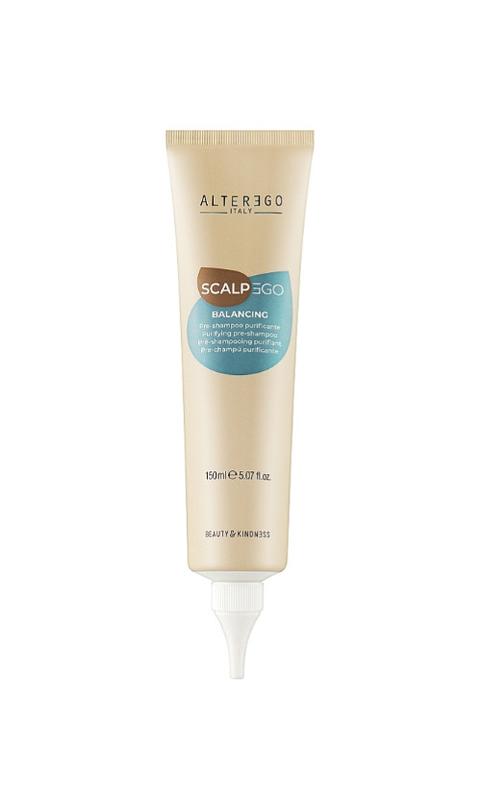 Для ретельного очищення волосся фахівці бренда Alter Ego розробили спеціальний балансувальний прешампунь. Такий засіб ефективно допомагає видалити надлишок себуму та відновити баланс мікробіому шкіри голови. Формула б'юті-продукту збагачена натуральними рослинними екстрактами, які проявляють відмінні себорегулювальні, очищувальні, освіжальні та тонізувальні властивості. Особливості Alter Ego ScalpEgo Balancing Purifying Pre-Shampoo: - усуває забруднення й надлишок шкірного сала шкіри голови; - гліцерин нормалізує гідробаланс пасм; - пантенол чинить регенерувальну й пом'якшувальну дію; - екстракти розмарину, крес-салату й шавлії регулюють вироблення себуму та забезпечують профілактику лупи; - ніацин і біотин активізують процеси мікроциркуляції та поліпшують живлення волосяних фолікулів; - токоферол виконує антиоксидантну функцію й захищає волосся від негативного впливу вільних радикалів; - ментол заспокоює і освіжає шкіру голови.