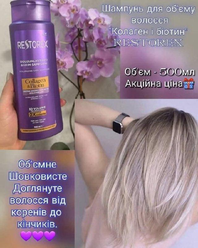 Шампунь, придающий объем для всех типов волос коллаген и биотин restorex, 500 мл
