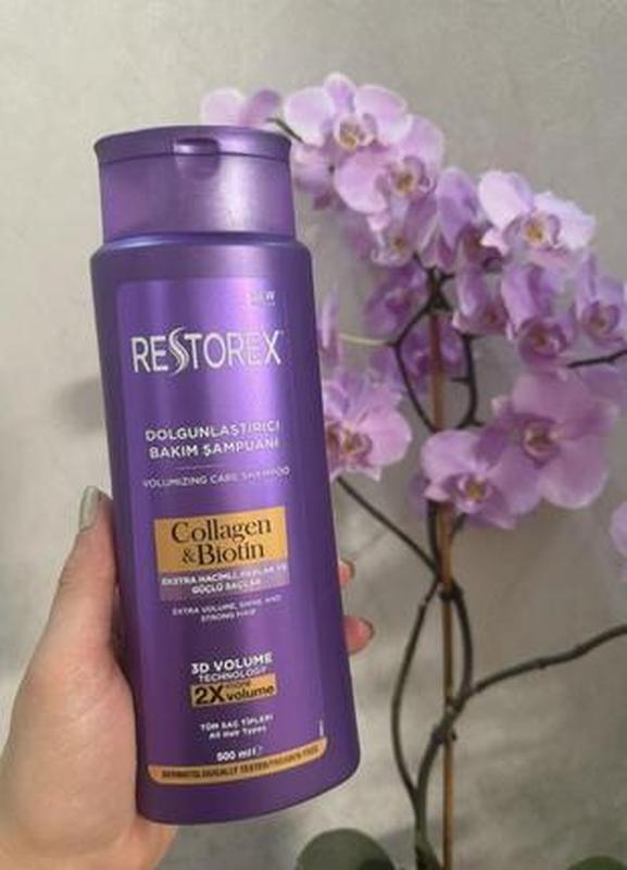 Серія RESTOREX Collagen & Biotin розроблена для тонкого, сухого або ослабленого волосся. Засоби збагачені колагеном і біотином, які забезпечують 2× більше об’єму, блиску та еластичності. Не містять парабенів. Підходять для щоденного використання.
