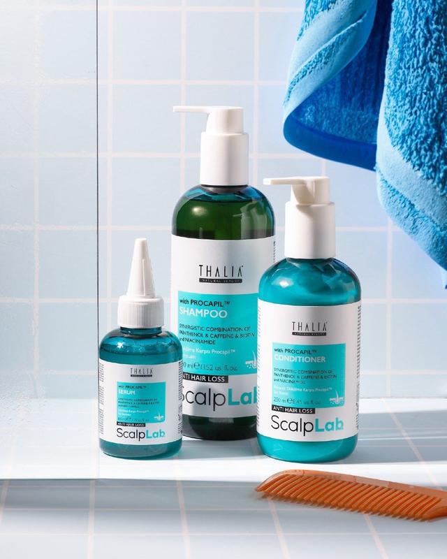 В набір входить шампунь, кондиціонер та сиворотка Дермокосметичні продукти серії SCALP LAB з доведеною лікувальною дією покликані нанести нищівного удару випадінню волосся. Шампунь містить унікальний зміцнюючий комплекс Procapil™, доповнений Д-пантенолом, кофеїном, біотином і екстрактом елеутерококу, що діють синергетично і прицільно на основні причини випадіння волосся. Продукт допомагає уповільнити процес старіння волосин, надає об'єму, забезпечує тривале зволоження, запобігає ламкості та посилює блиск. Він живить волосяні фолікули й сприяє доглянутому та сяючому вигляду волосся. Підходить для всіх типів волосся. Не містить шкідливих для здоров'я речовин.