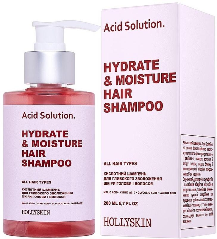 Кислотний шампунь Acid Solution на основі інноваційного зволожувального фактора ретельно і делікатно очищує волосся і шкіру голови, надає блиску і шовковистості, зберігає природний об'єм надовго. Бережний догляд без сульфатів і парабенів зберігає мікробіом шкіри голови, запобігає виникненню сухості, свербіння чи лущення, робить волосся гладким і еластичним. Унікальний зволожувальний фактор поєднує в собі: амінокислоти - гліцин і лізин; сечовину;