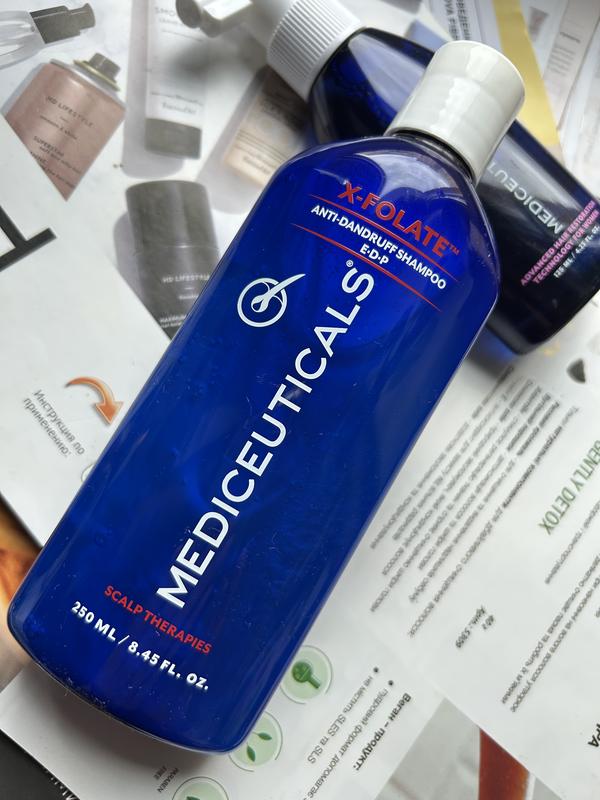 Mediceuticals шампунь для вирішення різних проблем шкіри голови: усуває лупу, лущення, особливо та подразнення шкіри голови. +Застосовується при лікуванні лупи, псоріазу, екземі та дерматитів +Заспокоює чутливість, почервоніння та подразнення шкіри +Видаляє скупчення ороговілих клітин шкіри +Контролює подальший поділ і відлущення клітин шкіри +Безпечний для фарбованого волосся Ключові речовини: +Piroctone olamine (піроктон оламін) має протигрибкову та антибактеріальну дію. дію. дія, відповідь сповільнити вироблення шкірного салату, яке є одним з основних причин розвитку бактерій і лущення. +Climbazole (клімбазол) - місцевий протигрибковий засіб, який пригнічує розмноження грибів Працює в синергії з: +TheraRx™ – очищаючий, протизапальний догляд для шкіри голови та тіла +Therapeutic™ – заспокійливий кондиціонер для шкіри голови та волосся Застосування: Ніжними масажними рухами нанесіть шампунь X-FOLATE™ на вологі волосся та зробіть голову, залиште на 2-3 хвилини, після чого змийте водою. За потреби повторіть нанесення. Використовуйте догляд THERARX™ як попередній етап догляду за шкірою голови. Застосуйте кондиціонер THERAPEUTIC™ після миття голови відновлення рівня рН.