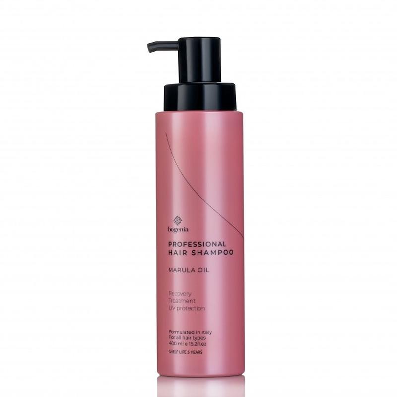 Шампунь для волосся Bogenia з олією MARULA, 400 мл Професійний зволожуючий шампунь із марулою. Шампунь містить комплекс рослинних олій та екстрактів. Олія марули та органи повертають красу та силу волосся, глибоко зволожують, відновлюють їх структуру, забезпечують блиск і шовковистість, захищають волосся від впливу УФ-променів. Для всіх видів волосся. Не містить парабенів. Спосіб застосування Нанести на вологе волосся, спінити, змити.