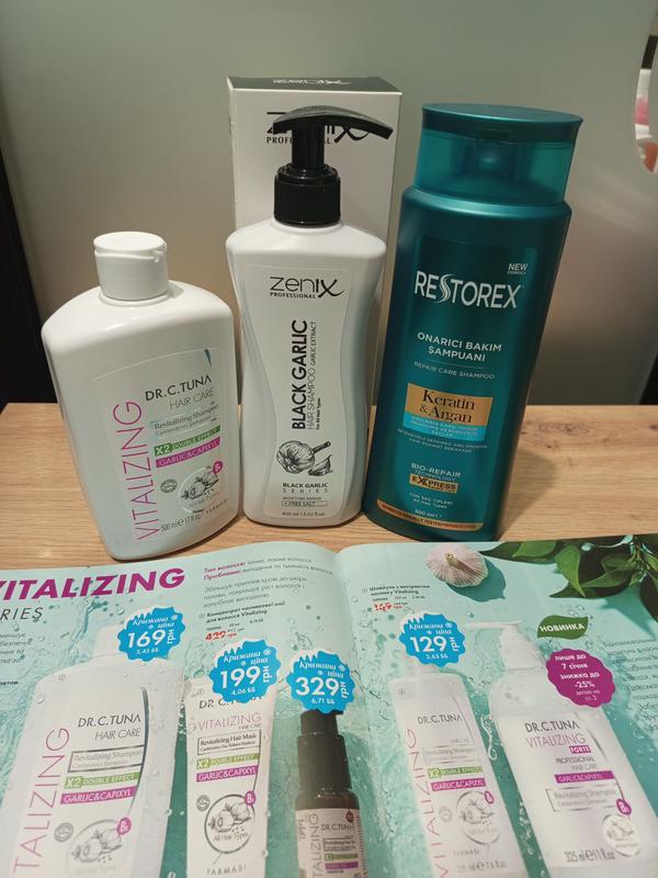 Безпечна угода на будь яку пошту. ✔️ По завдатку 100грн через чат. На укр та нову пошту ✔️ Ціна вказана за три шампуні 💟✔️ Виробник Туреччина сертифікована косметика ✅🛍️🛍️🛍️Відновлюючий шампунь для всіх типів волосся "Кератин і аргана" Restorex, 500 мл Якщо ви регулярно фарбуєте волосся або робите термоукладку, вам життєво необхідний саме цей шампунь! Завдяки технології посиленого біовідновлення, що доповнена дуетом кератину й аргани, ви швидко отримаєте ідеально доглянуті, м’якенькі, блискучі та гладенькі локони зі здоровими кінчиками. Білок кератин з олією аргани у складі шампуню разом забезпечують повну регенерацію та необхідне живлення виснаженого й ламкого волосся – від коренів до самісіньких кінчиків! За регулярного користування продуктом ваше волосся стане сильним і здоровим. Шампунь підходить для всіх типів волосся. ✅🛍️🛍️🛍️Шампунь з екстрактом чорного часника Zenix, 400 мл Окрім своєї основної місії протидіяти випадінню, чорний часник чудово справляється й з іншими важливими задачами: ретельно очищає шкіру голови від омертвілих клітин, тим самим запобігаючи утворенню лупи, зменшує ламкість, позбавляє посічених кінчиків, відмінно розгладжує та надовго зберігає шовковисту м’якість прядок. І головне: чорний часник благотворно впливає на будь-який тип волосся без обмежень! ✅🛍️🛍️🛍️Шампунь з екстрактом часнику Vitalizing, 500 мл Dr. C. Tuna Farmasi Vitalizing Garlic оживляючий-реанімуючий шампунь містить часник й капіксил, які є чудовими засобами для ламкого волосся. Реанімує пошкоджене волосся і живить його, обволікаючи кожну волосинку. При регулярному використанні зміцнює посічене волосся, запобігає появі лупи і надає йому блиску та здорового вигляду. Шампунь сприяє посиленому росту волосся та його відновленню. Екстракт часнику живить і зміцнює волосся. Регулярне застосування шампуню допоможе зробити волосся привабливим і здоровим, адже Farmasi піклується не тільки про зовнішню красу, а й про здоров'я шкіри голови. Не містить барвників, парабенів, силіконів, триклозанів та формальдигідів. Можна використовувати щодня