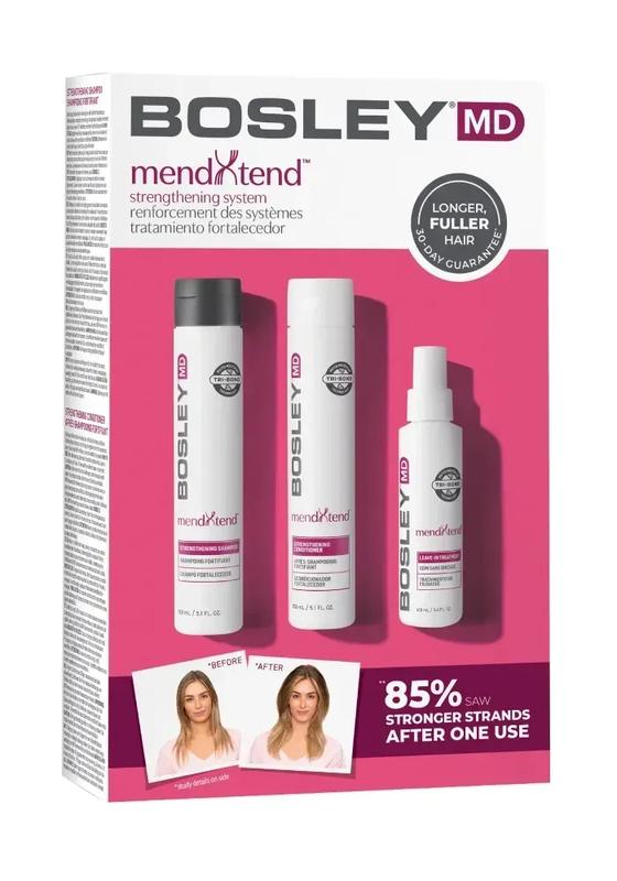 Професійна система Bosley MD MendXtend створена для активного зміцнення, живлення та відновлення тонкого, рідкого, хімічно або термічно пошкодженого волосся. Завдяки інноваційній фітомолекулярній технології Tri-Bond®, формула діє на всі шари волосини, відновлюючи її міцність і еластичність. Ботанічні екстракти з вітамінами та інгібіторами ДГТ стимулюють здоровий ріст волосся, зменшують ламкість і додають густини. Переваги: - У 5 разів міцніше волосся вже після першого використання - Запобігає ламкості та сухості - Покращує ріст волосся і зменшує випадіння - Надає волоссю об'єму, блиску та шовковистості - Відновлює пошкодження після фарбування, знебарвлення, термоукладання - Усуває статику, забезпечує легке розчісування Підходить вам, якщо: - Ваше волосся тонке, рідке або ослаблене - Спостерігаєте порідіння та втрату об'єму - Волосся пошкоджене фарбуванням або нагрівальними приладами - Не вдається відростити довжину через ламкість До складу набору входить: 1. MendXtend зміцнюючий шампунь (150 мл) 2. MendXtend зміцнюючий кондиціонер (150 мл) 3. MendXtend зміцнюючий догляд (100 мл) Ключові інгредієнти: - 🌿 Дерево Тари - відновлює структуру, запобігає зневодненню - 💧 Гіалуронова кислота - зволожує без обтяження - 🪸 Червоні морські водорості - зміцнюють і надають еластичності - 🍇 Екстракт граната - активує ріст волосся - 🌴 Екстракт карликової пальми - блокує ДГТ, перешкоджає стоншенню Спосіб застосування: 1. Нанесіть шампунь, залиште на 1 хвилину, змийте. 2. Використайте кондиціонер на середину та кінчики волосся, залиште на 5 хвилин. 3. Розпиліть незмивний догляд на вологе волосся та зробіть укладку.