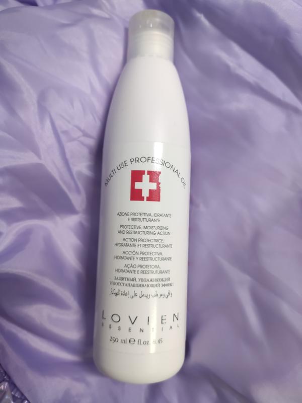 Захисна олійка Lovien Multi use professional oil використовується для додавання у фарбу або як самостійний продукт (для зволоження та насичення волосся). Купила та не використовувала. Стоїть без діла.