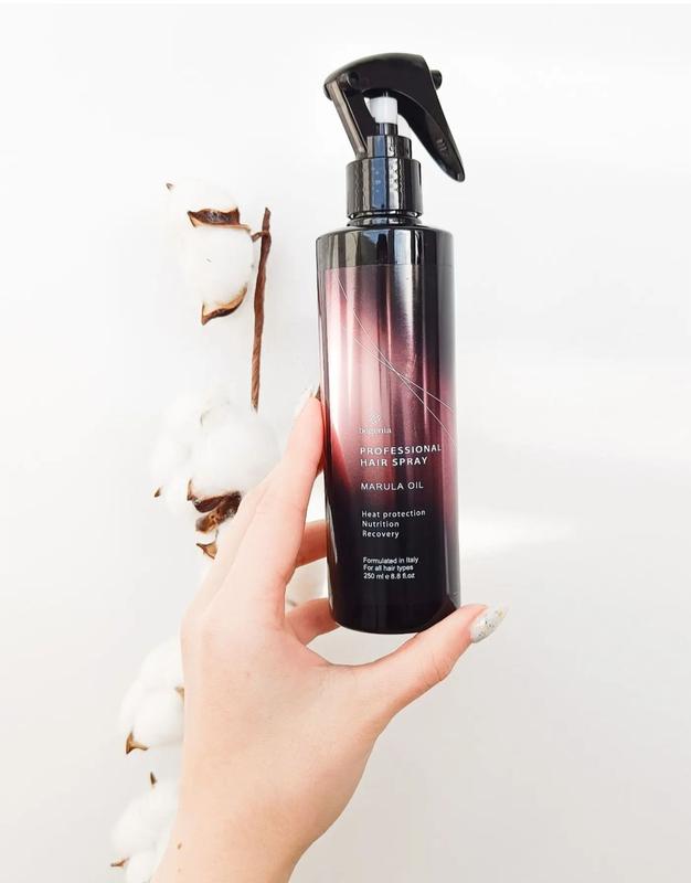Bogenia Professional hair spray Термозахисний спрей 250 мл Ефективний захист волосся від термічної дії. Формула з нано-молекулами білків, що відновлюють структуру волосся. Містить UVA-UVB фільтри. Захист кольорів. Без сульфатів. Для будь-якого типу волосся. Спосіб застосування: нанести на вологе або сухе волосся з відстані 15-20 см. Не змивати.