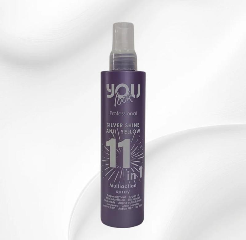Бажаєте отримати все й одразу? Просто додайте в регулярні процедури за волоссям мультиспрей миттєвої дії для блондинок 11 в 1 бренда You Look Professional, і ви дізнаєтеся, що революція у догляді можлива! Засіб останнього покоління поєднує 11 переваг у одному засобі, забезпечуючи миттєвий ефект. Воно нейтралізує жовті відтінки, оскільки до складу входить фіолетовий пігмент. Ергономічний дозатор забезпечує комфортне застосування, рівномірно розподіляючи продукт. Особливості Multiaction Spray 11 in 1 від бренда You Look Professional: - легка консистенція; - лягає невагомою вуаллю, не обтяжуючи та не склеюючи пасма; - надає зачісці пружність, гладкість; - дарує волоссю природний блиск; - насичує пасма корисними речовинами; - робить локони слухняними та пружними; - згладжує лусочки; - полегшує розчісування; - запобігає ламкості; - захищає під час використання термоприладів; - чинить моментальну дію; - заповнює нестачу вологи; - запобігає посіченості кінчиків; - розгладжує пасма; - дрібнодисперсний розпилювач забезпечує зручність у використанні; - запобігає потьманінню відтінку.