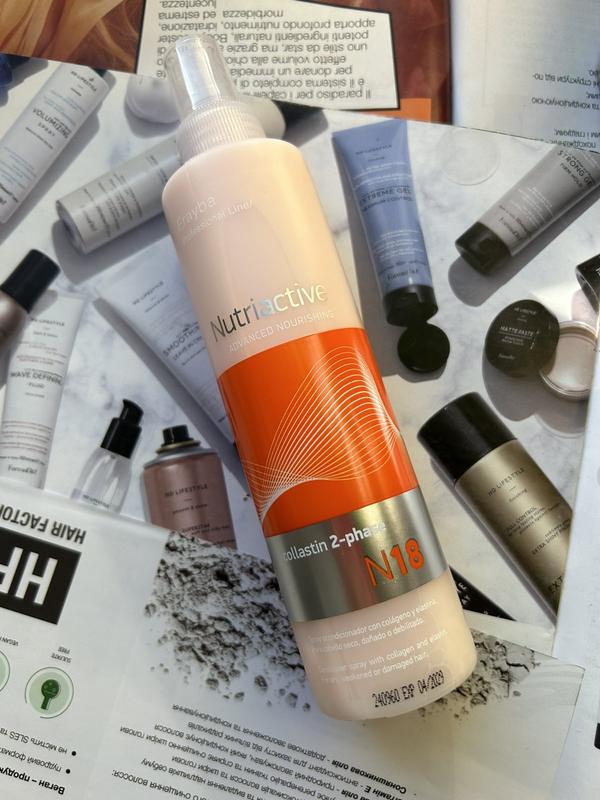 Приголомшливий засіб для турботи за всіма типами пошкодженого волосся – «Двофазний спрей – кондиціонер» від іспанської косметичної компанії Erayba. Цей продукт призначений для відновлення, живлення та тонізування волосся. Універсальний двофазний Erayba N18 2 Phase створений на основі рослинних протеїнів. Після першого ж застосування миттєво відновлює ламке волосся, захищає його від агресивного впливу навколишнього середовища, надає блиску і приголомшливій шовковистості. До складу спрею входять молочко солодкого мигдалю, екстракт авокадо, гідролізований соєвий білок. Ці компоненти зміцнюють волосяні цибулини, забезпечують вітамінами, мінералами та амінокислотами волосяне волокно, підтримують оптимальний рівень зволоження волосся. Бонусом спрею є те, що він знімає статику, полегшує розчісування волосся та містить сонцезахисний фільтр. Двофазний спрей-кондиціонер не вимагає ополіскування при нанесенні. Активні компоненти: молочко солодкого мигдалю, екстракт авокадо, гідролізований соєвий білок, кератин, вітаміни, мінерали, амінокислоти. Спосіб застосування: Розпорошити на вологе волосся і розчесати. Чи не змивати. Дозувати відповідно до товщини та ступеня пористості волосся Склад: Aqua (Water), Cyclomethicone, Cyclopentasiloxane, Propylene Glycol, Phenyl Trimethicone, Amodimethicone, Hydrolyzed Collagen, Hydrolyzed Elastin, Polyquaternium-22, Dimethicone, Dimethiconol, Metrimonium Chloride thylhexylglycerin, Trideceth-12, Citric Acid, CI 19140 , CI 16255, Parfum (Fragrance).