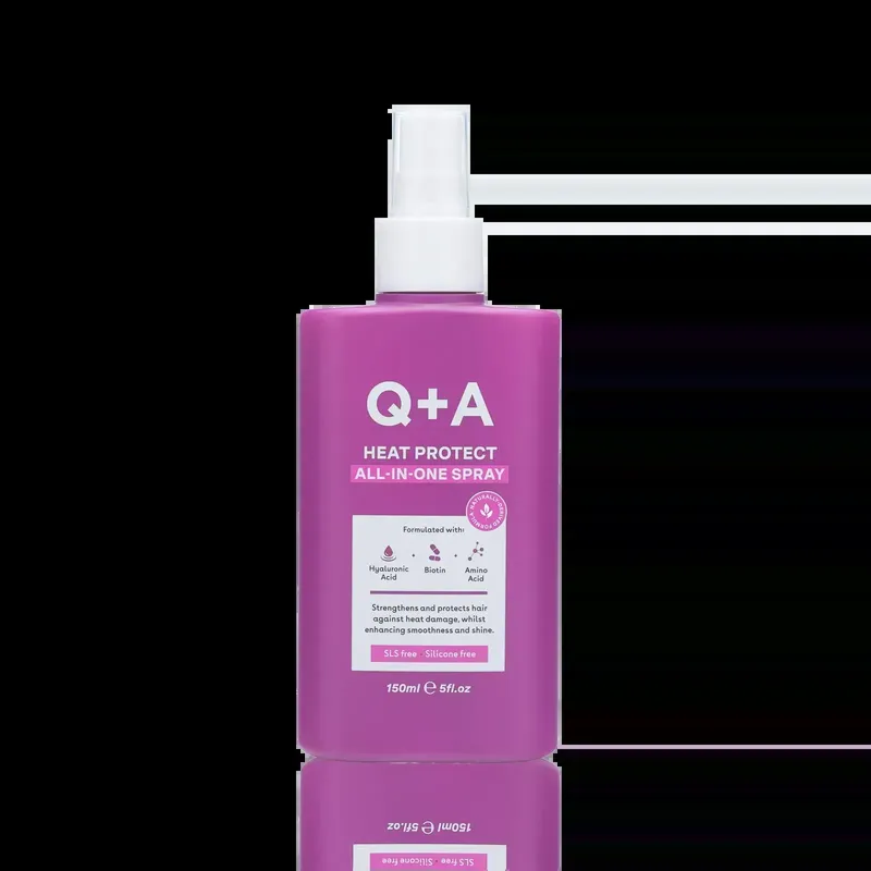 Спрей разработан для защиты волос от воздействия высоких температур и подходит для любого типа волос. В составе содержатся аминокислоты, биотин и гиалуроновая кислота, благодаря которым средство помогает устранить пушистость, сохранить структуру волос и эффективно увлажнить их. Термозащита укрепляет волосы, возвращает мягкость, упругость и естественный блеск. Преимущества Q+A Heat Protect All-in-One Spray: Не содержит силиконов Не тестируется на животных Не содержит сульфатов Протестирован дерматологами Упаковка пригодна для переработки Содержит натуральные компоненты Подходит для всех типов волос Защищает от воздействия температуры Глубоко увлажняет и восстанавливает
