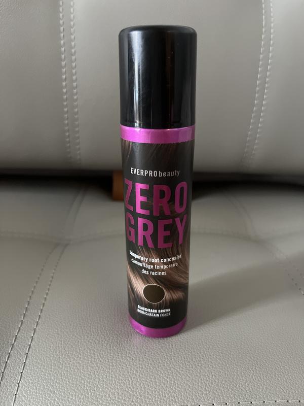 Це тимчасовий консилер для коренів Everpro Beauty Zero Grey. Він забезпечує тимчасове маскування сивого волосся, яке змивається шампунем. Продукт містить мінеральні косметичні пігменти, які прилягають до волосся. Він не містить аміаку, перекису, сульфатів, парабенів та синтетичних барвників. Продукт є веганським, не тестується на тваринах та безпечний для фарбованого волосся. Ефективний консилер для коренів може значно заощадити час і гроші, дозволяючи вам довше перервати між відвідуваннями перукарні. Гейл Федерічі, генеральний директор Color Wow, каже: «Для жінок з рідким волоссям засоби для коріння волосся миттєво створюють вигляд густого, пишного волосся Не підійшов колір